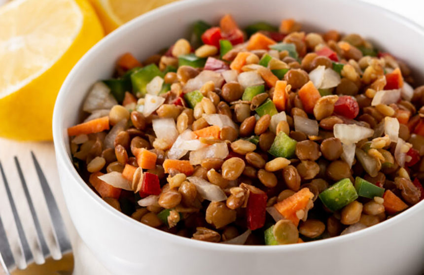 Las lentejas son otro ingrediente maravilloso para ensaladas veraniegas. Prueba una ensalada de lentejas con pimientos rojos y amarillos asados, espinacas frescas, zanahorias ralladas y un puñado de perejil picado. Para el aderezo, mezcla aceite de oliva, vinagre de vino tinto, mostaza Dijon, miel, sal y pimienta. Esta ensalada no solo es deliciosa, sino que también te mantendrá saciado durante horas gracias a su alto contenido de fibra.